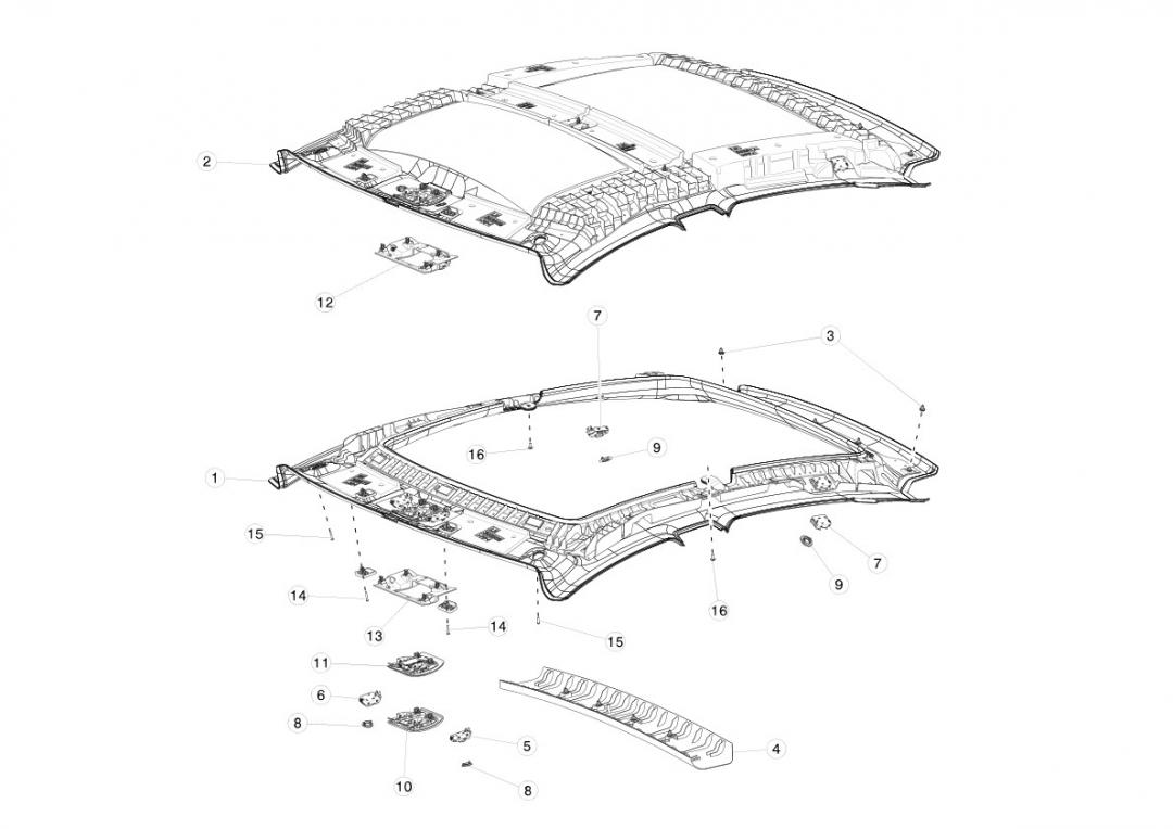 PANORAMIC ROOF HEADLINER ASSEMBLY WITH MONOCAM - ALCANTARA (1045936-01-D).
