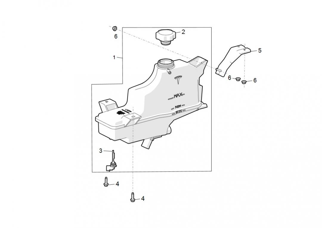Оригинальное название запчасти в каталоге Tesla Model S 2012-2016 - COOLANT RESERVOIR ASSEMBLY / Расширительный бачок системы охлаждения в сборке / Пашыральны бачок сістэмы ахаладжэння ў зборцы (6007339-00-C).
