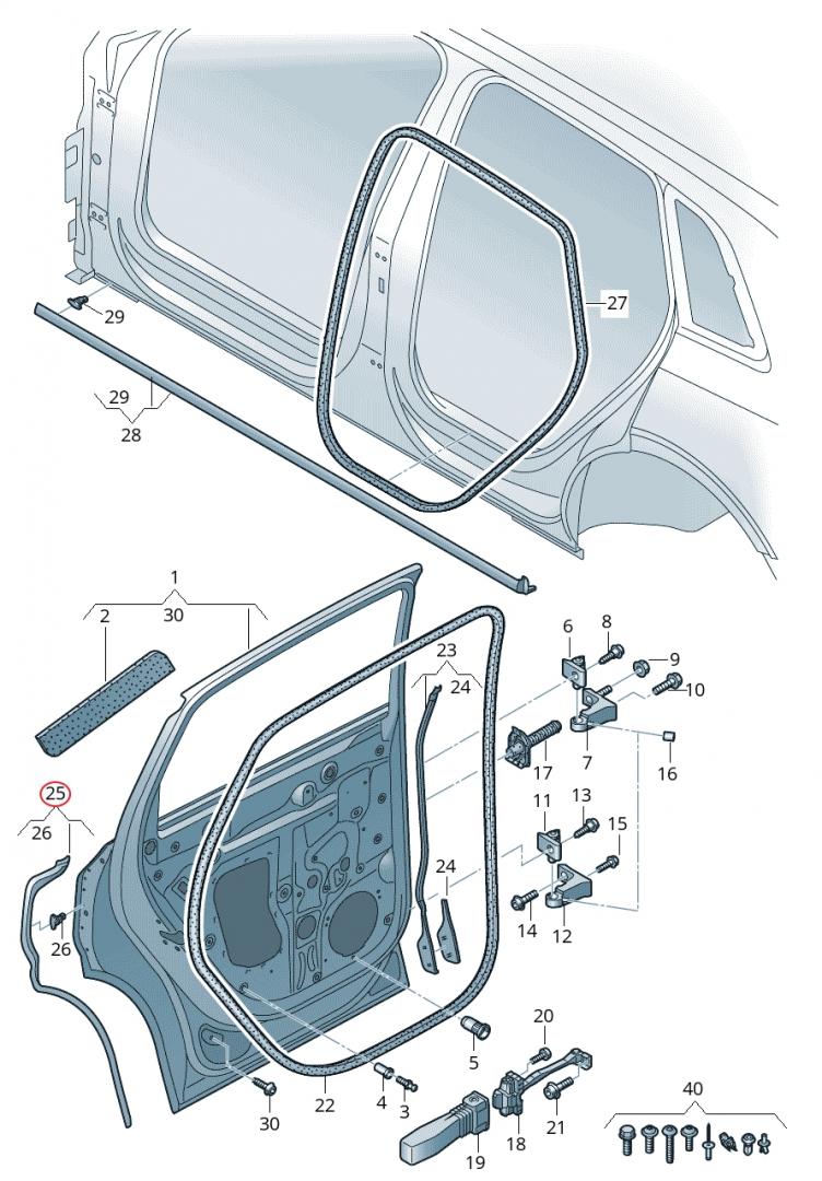 Уплотнитель задней двери Audi e-tron 2019
