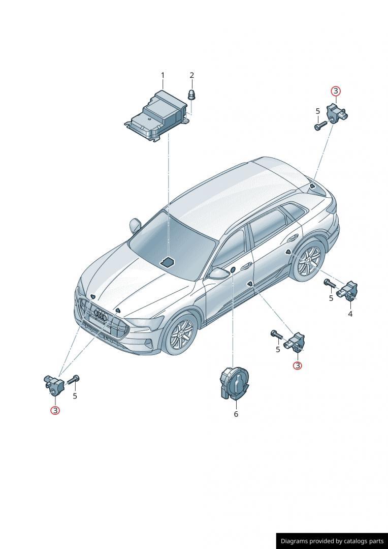 Датчик удара передний (установлен на телевизоре) и боковой (на стойке B), задний, Audi E-Tron