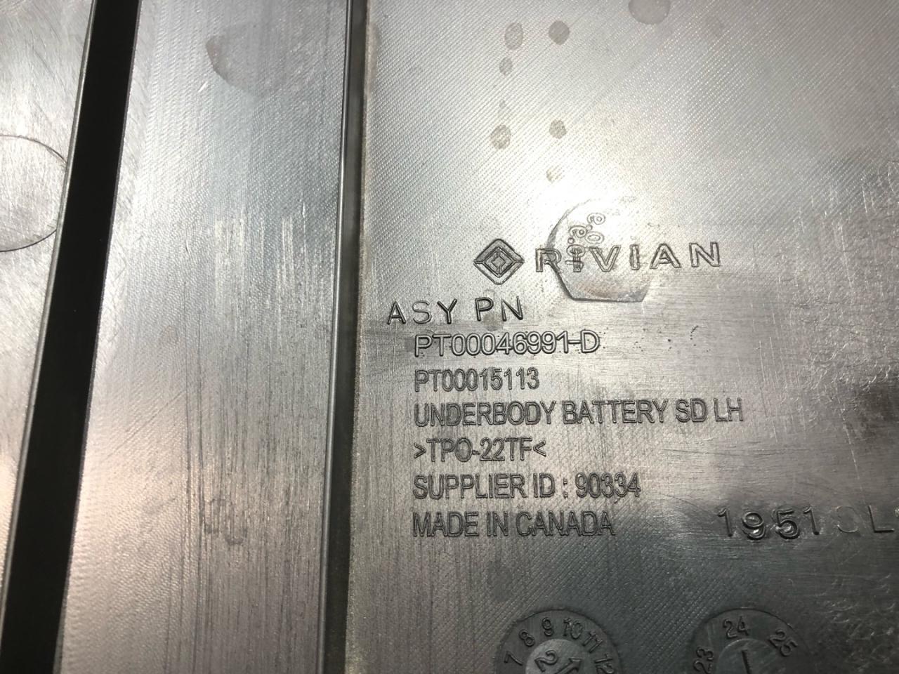 Защита днища - левого порога, центральная, пластик с повреждениями, Rivian R1T LE