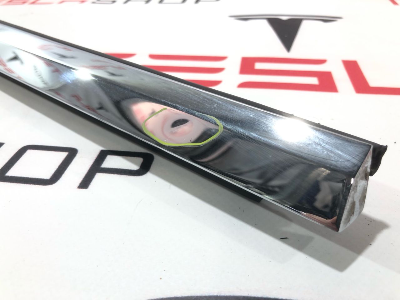 Молдинг наружный, передней правой двери, хром, с дефектом (вмятина), Tesla Model X