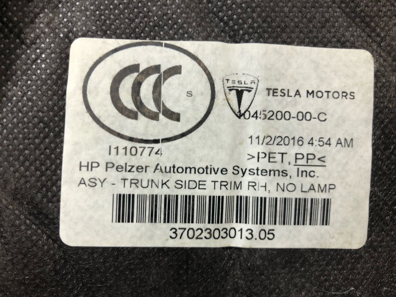 Отделка багажника боковая правая, Tesla Model S