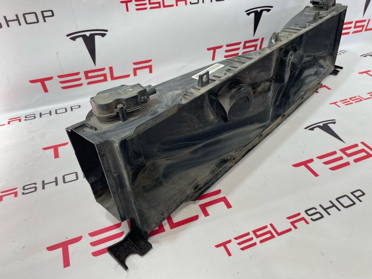 Воздуховод центрального радиатора, в сборе с электроприводами (№1 и №3) и клаксонами, Tesla Model S