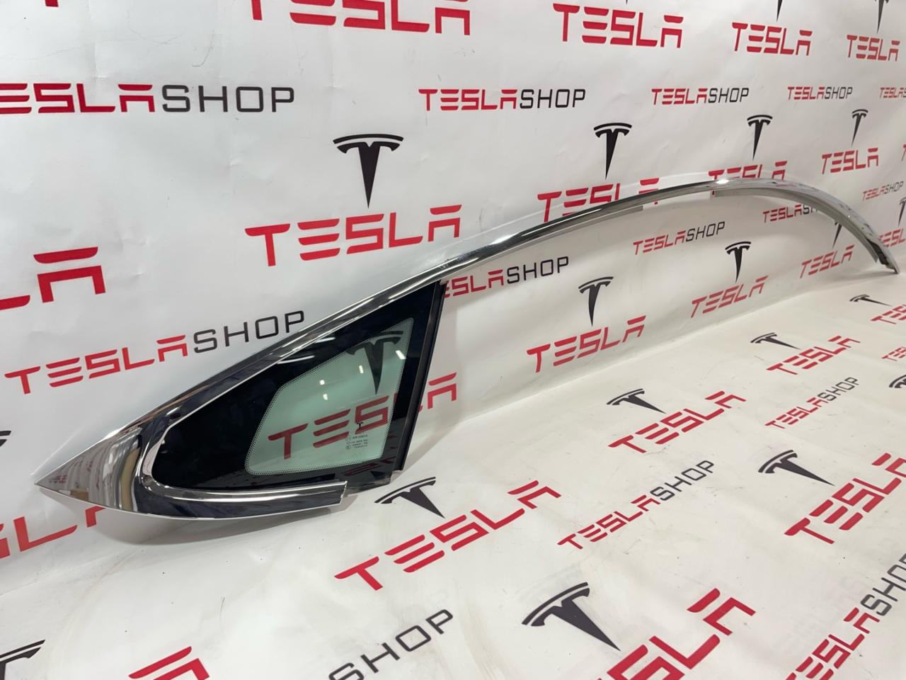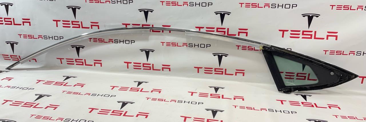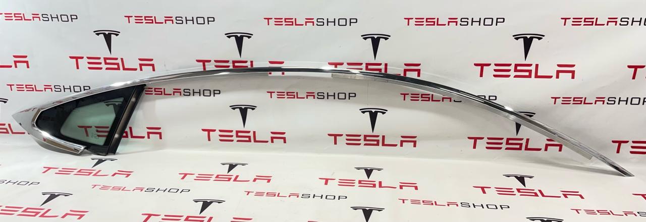 Молдинг кузова боковой правый, хромированный металл, в сборе со стеклом (форточкой), Tesla Model S, SRest